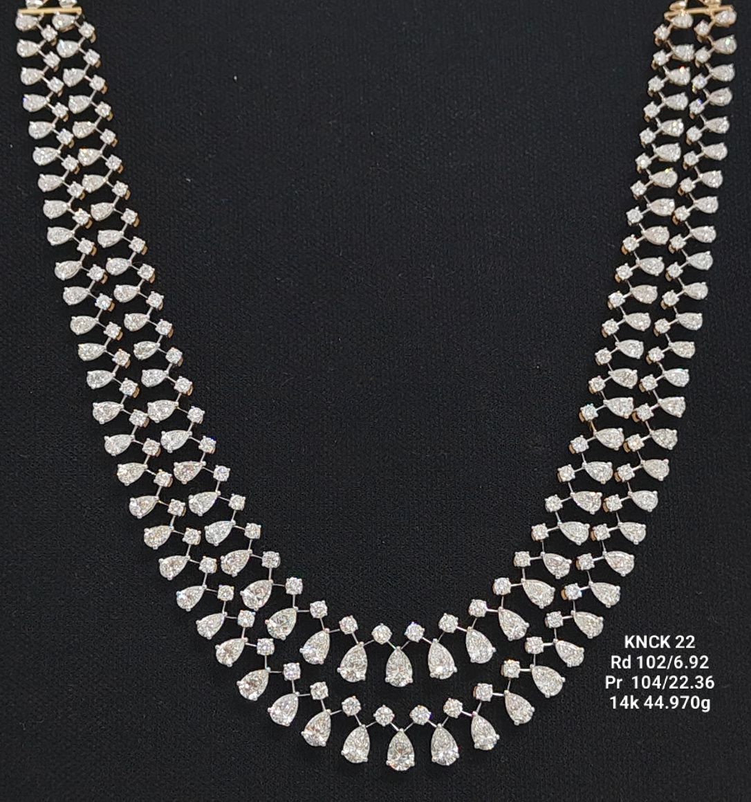Discover the refined appeal of lab grown diamond jewelry with this distinctive necklace set. Featuring a mix of 104 diamonds totaling 22.36 carats and crafted with a total weight of 50.826 grams, this set is an excellent choice for those seeking premium craftsmanship and responsible sourcing. The variety of diamond shapes adds dimension and interest, making it a thoughtful addition to your collection. If you’re comparing diamond set price in India, you’ll appreciate the exceptional value offered by lab grown options, delivering lasting style with a modern sensibility.